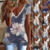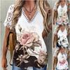 Women's Summer Short Sleeve V-Neck Lace Splicing Printed Shirt Blouse