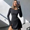 Dámské podzimní a zimní nové módní jednoduché jednobarevné šaty se zavazováním v pase na zádech