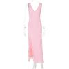 Dámské Růžové Maxi Šaty s Volánky, Výstřih do V, Bez Rukávů, Dlouhé Letní Šaty, Odkrytá Záda, Elegantní Šaty na Plážovou Párty
