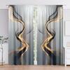 2 kusy, abstraktní estetické umělecké závěsy s potiskem linií - poloprůhledné závěsy - obývací pokoj, ložnice, domácí dekorace