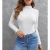 Dámské ležérní malé tričko s vysokým krkem, jednobarevné, slim, tenké, s dlouhým rukávem