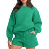 2 ks/sada Dámská mikina a šortky Volný jednobarevný stahovací pas Dlouhý rukáv Kulatý výstřih Elastické manžety Měkké kapsy Dámský podzimní jarní top a šortky