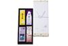 [Specifikace] Rozměry (Vnější) mm: Cca. 250 x 315 x 35 (vysoký) Délka vonné tyčinky: 13,5 cm Obsah: Vonná tyčinka cca. 33 g (cca 60 kusů) x 5 krabiček, svíčka 1 krabička Množství kouř: Malá doba hoření: Přibližně 25 minut pro vonné tyčinky i svíčky Vůně: Elegantní vůně santalového dřeva a květin, osvěžující vůně jablka, elegantní vůně broskve Materiály: Tab prášek, santalové dřevo, vanilka, broskev, jablko, přírodní vůně Země původu: Ostrov Hyogo Awaji, známý výrobou vonných tyčinek