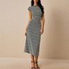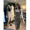 Summer Women's Smocked Temperament Striped Sexy Slim Package Hip Knitted Long Dresses