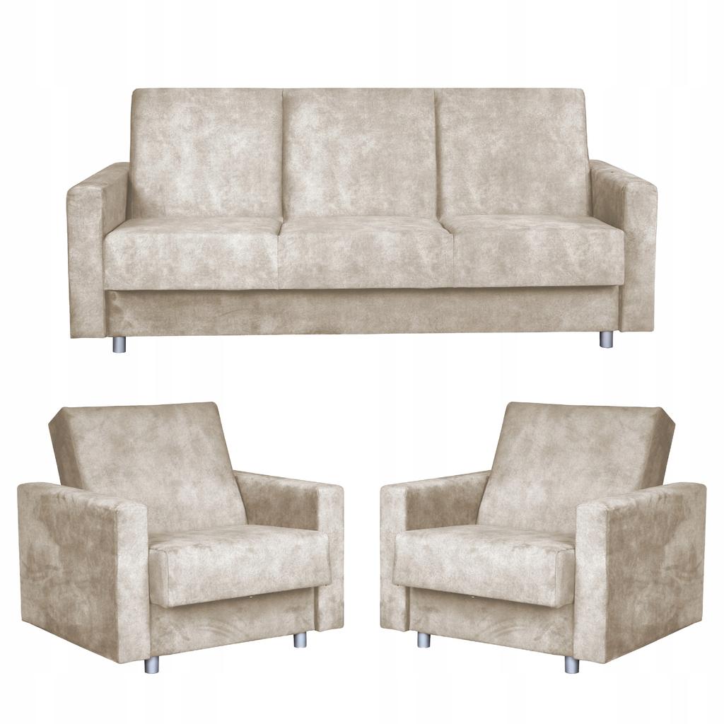 Zestaw mebli wypoczynkowy Alicja wersalka kanapa fotele Family Meble beżowy