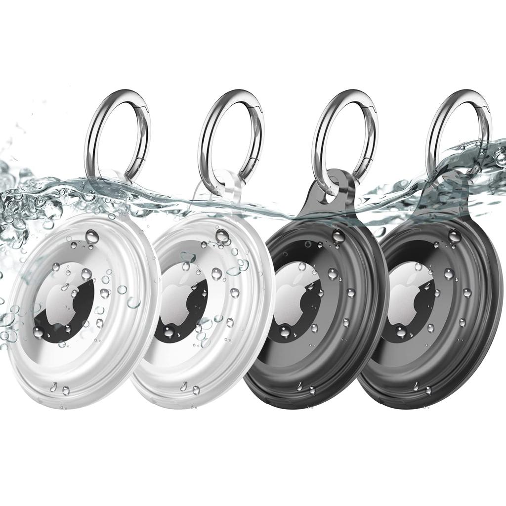 Set of 4 AirTag case IPX8 waterproof, whole body anti-vibration, anti-scratch, lightweight, easy to install, suitable for pet ropes, backpacks, bags, keys, etc. AirTag key chain (clear + black)
