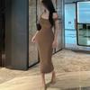 Šaty s holými zády pro ženy - Zeštíhlující dlouhá sukně na ramínka s vestavěným spodním prádlem