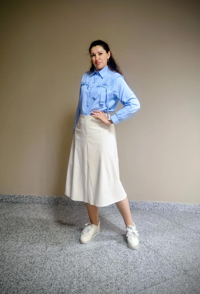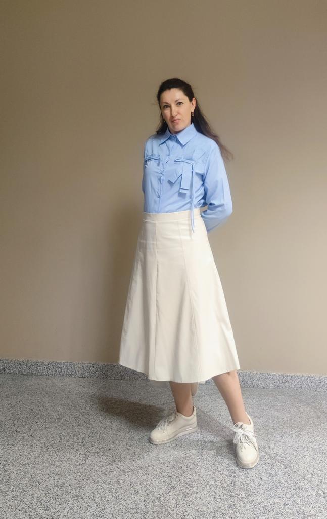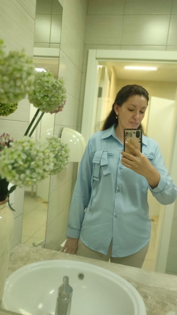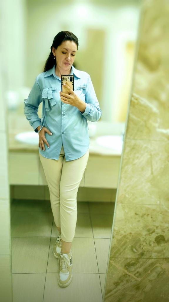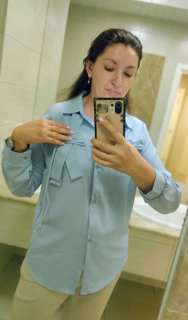 Modrá košile s polo límečkem, Dámská košile s dlouhým rukávem s mašlí, Módní košile pro sladké dámy