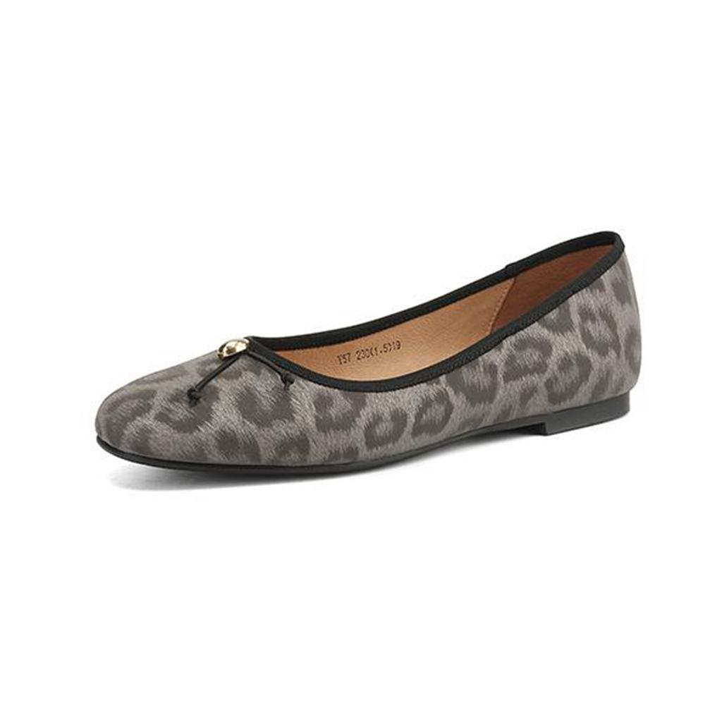 Krazing Pot Cow Skin Summer Spring Autumn Winter Flats Slip on Leopard Women Keep Warm Round Toe Bowtie Shallow Shoes