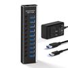 Sanwa Direct USB Hub 10portová USB nabíječka s individuálním přepínačem s AC adaptérem Samonapájecí USB3.2/5Gbps 400-HUBA23GM