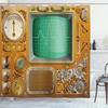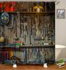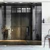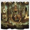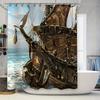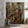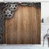 Průmyslový sprchový závěs, Steampunkový styl Antická mosazná kulatá upevňovací spona, Látkový koupelnový dekorační set s háčky