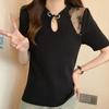 Women Sweaters Pullovers 2025 Summer Short Sleeve Stand Collar Black Knitted Sweater Women Tops Pullover JJ270