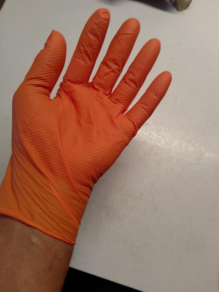 Oranžové nitrilové rukavice Heavy Duty 8mil průmyslové jednorázové rukavice s diamantovým úchopem pro bezpečnost mechaniků a pracovní rukavice