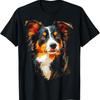Tričko Miluji svého australského ovčáka Portrét Pes s potiskem Nová letní móda Pánské tričko Akvarel Ležérní Tričko Hipster