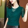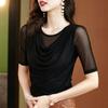Short-sleeved T-shirt Mesh Pile Collar Fashionable Base Shirt for Women