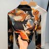 Half Turtleneck Base Shirt for Women's Women's Clothing Fashionable Printed Long-sleeved T-shirt Waist-hugging Temperament Top