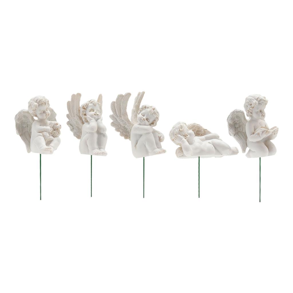 5 ks Figurka Cupida na tyčce Odolná pryskyřice Miniaturní Bílá Andělská Figurka pro Zahradu Zahrádku Trávníky