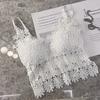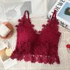 Dámský krajkový top s výstřihem do V a sexy zády, crop top s dutým výstřihem a podprsenkou, květinový výšivkový top Y2K 2025