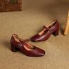 Krazing Pot Módní jarní a podzimní boty s hrubým podpatkem a přezkami, dámské boty Mary Janes s čtvercovou špičkou a lodičky z kravské kůže