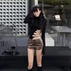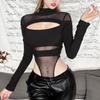 Evropský a americký retro pikantní dívčí top s dlouhým rukávem, vysokým límcem a výstřihem, dámský úzký, zeštíhlující