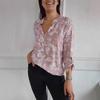 Dámské jaro léto volné ležérní halenka s potištěným flitrovým kapsářem s dlouhým rukávem