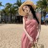 Dámské letní vintage jednobarevné nepravidelné prázdninové temperamentní halter šaty