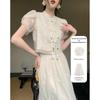 Dvoudílná sada tmavé látkové košile s knoflíkem na psaní v čínském stylu do půl těla