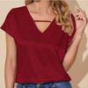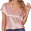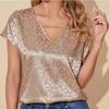 Spring Women's Clothing Color Ding V-neck Satin Top Loose Fitting Women's Clothing T-Shirts Women’s