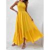 Módní sexy šaty bez rukávů pro ženy, letní prázdninové šaty s odhalenými zády a střihem, ležérní dlouhé šaty pro ženy, vintage nepravidelný vysoký pas, žluté šaty 26205
