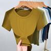 Závitové tričko s krátkým rukávem pro ženy Nové Dámské Jednobarevné triko s vnitřním zapínáním Módní top s velkým kulatým výstřihem