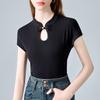 Chinese Short-sleeved T-shirt for Women's New Chinese Style Women's Retro Buttoned Hollow T-shirt Waist-receiving Water Drop Collar Top