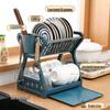 Odkapávač nádobí Stojan na sušení nádobí Kuchyňský úložný prostor Dvouvrstvý odkapávač nádobí Police Nůž Vidlička Držák nádoby Stojan na prkénko