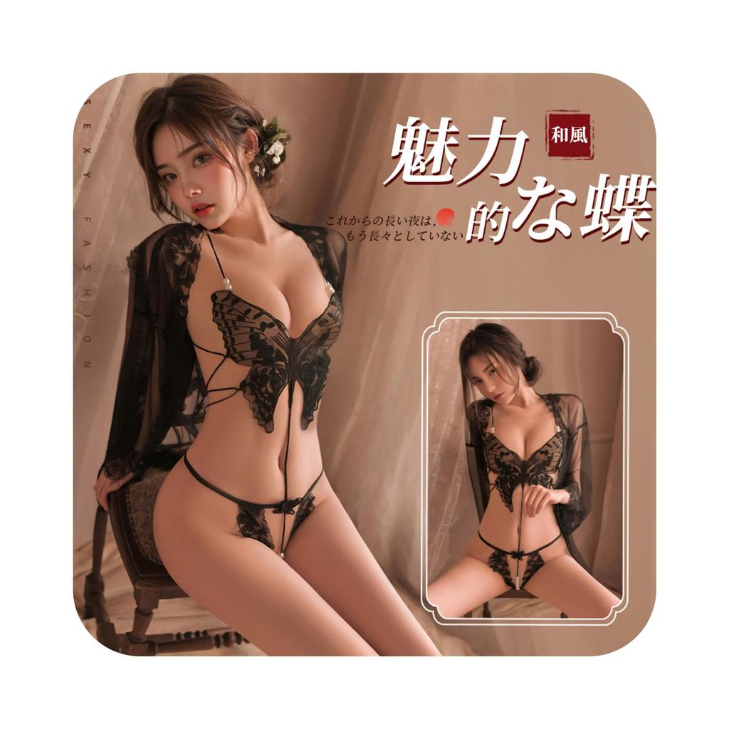 [Japanese Style Sexy Passion] A Japanese-style set, the butterfly-shaped lace bra has hidden "sweet words", the all-in band makes your body look beautiful, and the open crotch T-pane boldly challenges you to be sexy. Light and wearable, it shows off your beautiful figure, brings out the sexiness of women, warms up your relationship with your partner, and rekindles your love.