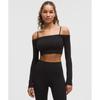Lululemon Wundermost Ultra Soft Nulu Square Neck Long Sleeve Bodysuit Shine Luxe Shine Foil Print Black