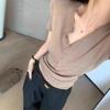 Design-sensory Curled Edge V-neck Knitted T-shirt for Women's Summer New Casual Simple Pullover Student Top Trend