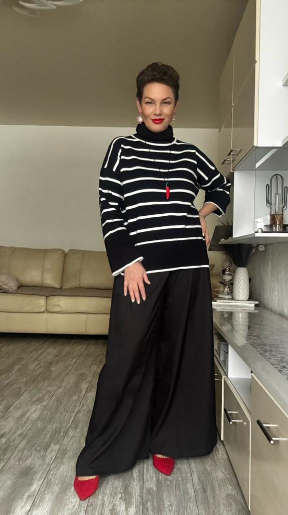 Pas 75 cm Boky 100 cm Vzal jsem velikost L a seděla velmi dobře. Kalhoty jsou vhodné pro jarní a podzimní sezónu. Na zimu jsou příliš tenké. Kvalita látky je dobrá.