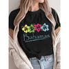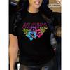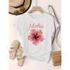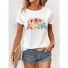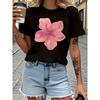 A women's casual floral print T-shirt, polyester short-sleeved crew neck top, summer loose knit T-shirt