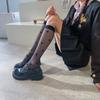 Spring Thin Ladies Black Jacquard Love Calf Socks, Japanese Jk Style Knee Socks Lolita Silk