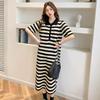 Women's Summer New Knitted Dress Polo Neck Mid-length Dress Loose Casual Stripes Refreshing All-matching Dress