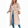 Dámské Vintage dlouhý trenčkot Klasický dvouřadý klopa Dlouhý rukáv Kabát odolný proti větru s páskem Elegantní bundy Streetwear