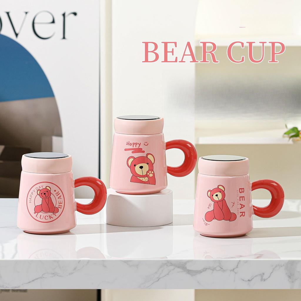 Roztomilý kreslený keramický šálek Růžový medvěd Zrcadlový šálek Hrnek pro pár Domů Víčko šálek na vodu Reklama Dárkový šálek