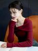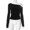 Evropské a americké dámské podzimní a zimní diagonální límec mašle odhalená ramena jednobarevný jednoduchý top