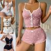 2 ks/sada Dámské tílko Šortky Oblek Mašle Srdce Potisk Bez rukávů Nárameníky Top Vysoký pas Krátké kalhoty Domácí oblečení Společenské oblečení Outfit Letní oblečení na spaní