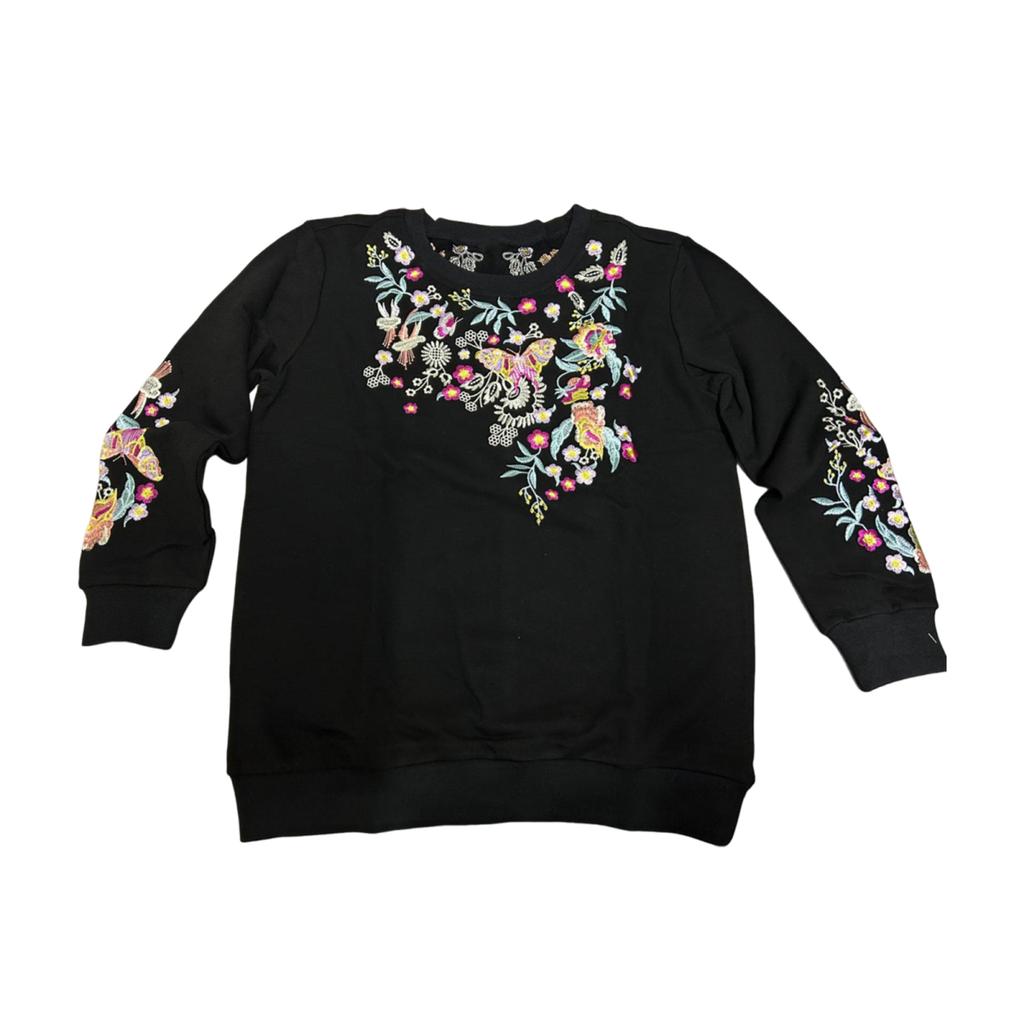 Featuring an embroidered print, long sleeves, and a round neck, this pullover sweatshirt pairs effortlessly with jeans, wide-leg pants, skirts, or shorts for a casual look.