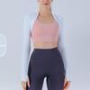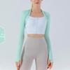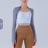 Dámský krátký top s otvory na palce na jógu - Přiléhavý vnější šál pro fitness a cvičení