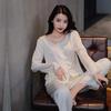 Women's High-End Modal Pajama Set: Long-Sleeved Top, Trousers, Chest Pads - Ideal for Autumn and Winter