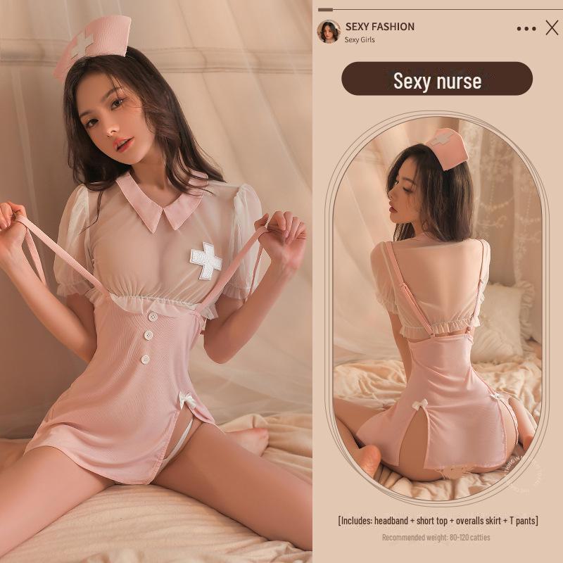Manyan Sexy Lingerie: Sheer Soft Yarn Split Skirt & Cute Nurse Uniform Set 9040