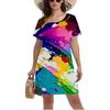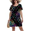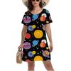 3D Blue Starry Sky Planet Meteor Pattern Print Dress Women Summer Short Sleeve Round Neck Casual A-Line Dress Vestidos De Mujer