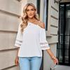 Dámská jarní letní jednobarevná košile s polovičními zvonovými rukávy, volná, s kulatým výstřihem, kovovou přezkou, odhalující jedno rameno, halenky, pulovr top S-XL