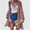 QICED Women's Early Autumn Thin Loose Bohemian Long Sleeve Printed Mid-Length Cardigan